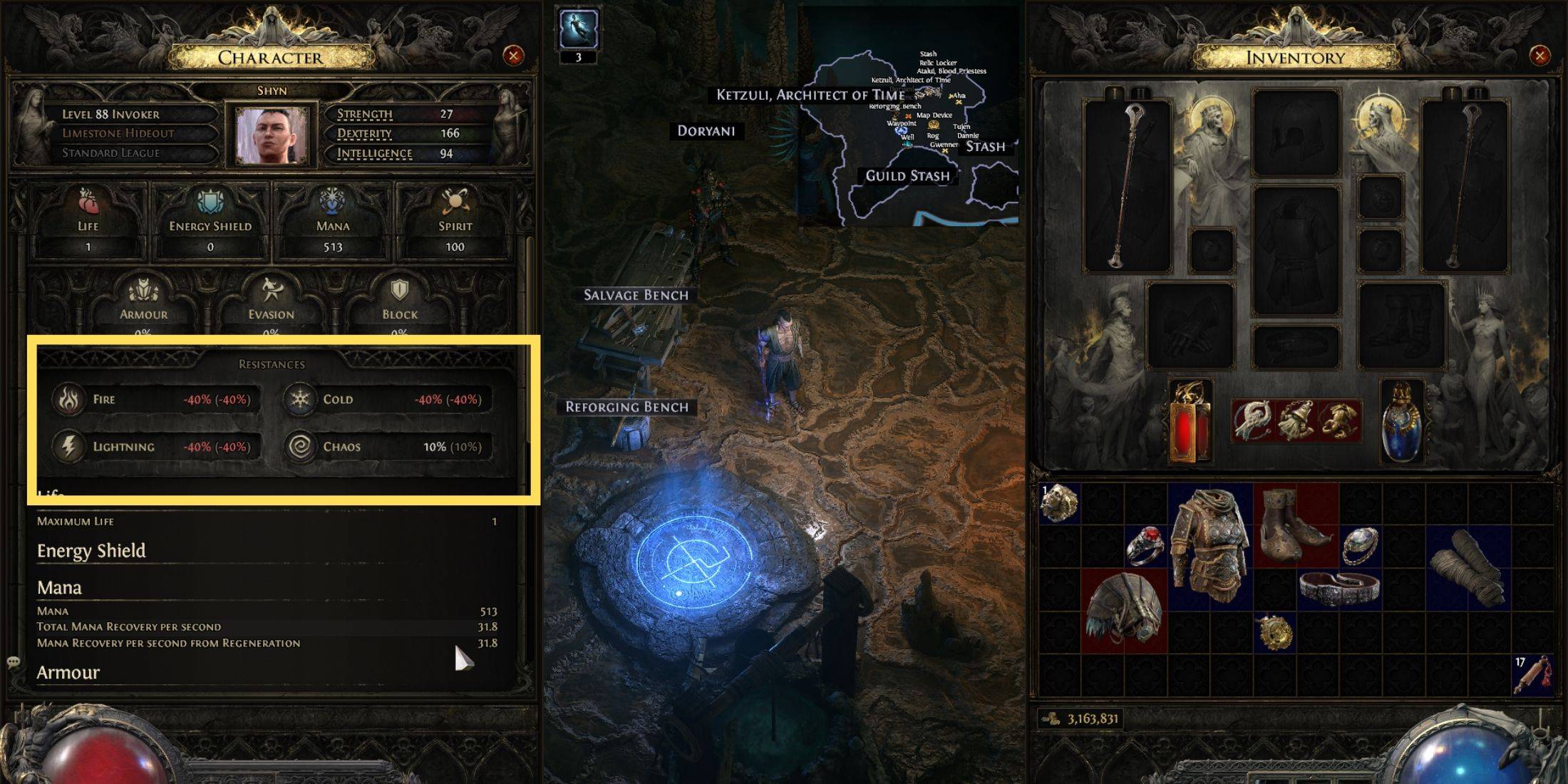 Para verificar se os bônus de resistência da campanha estão ativos em seu personagem, remova todo o equipamento e verifique seus valores de resistência durante o conteúdo do endgame. Um valor uniforme de -40% em todas as resistências elementais confirma que você não perdeu nenhum bônus permanente.